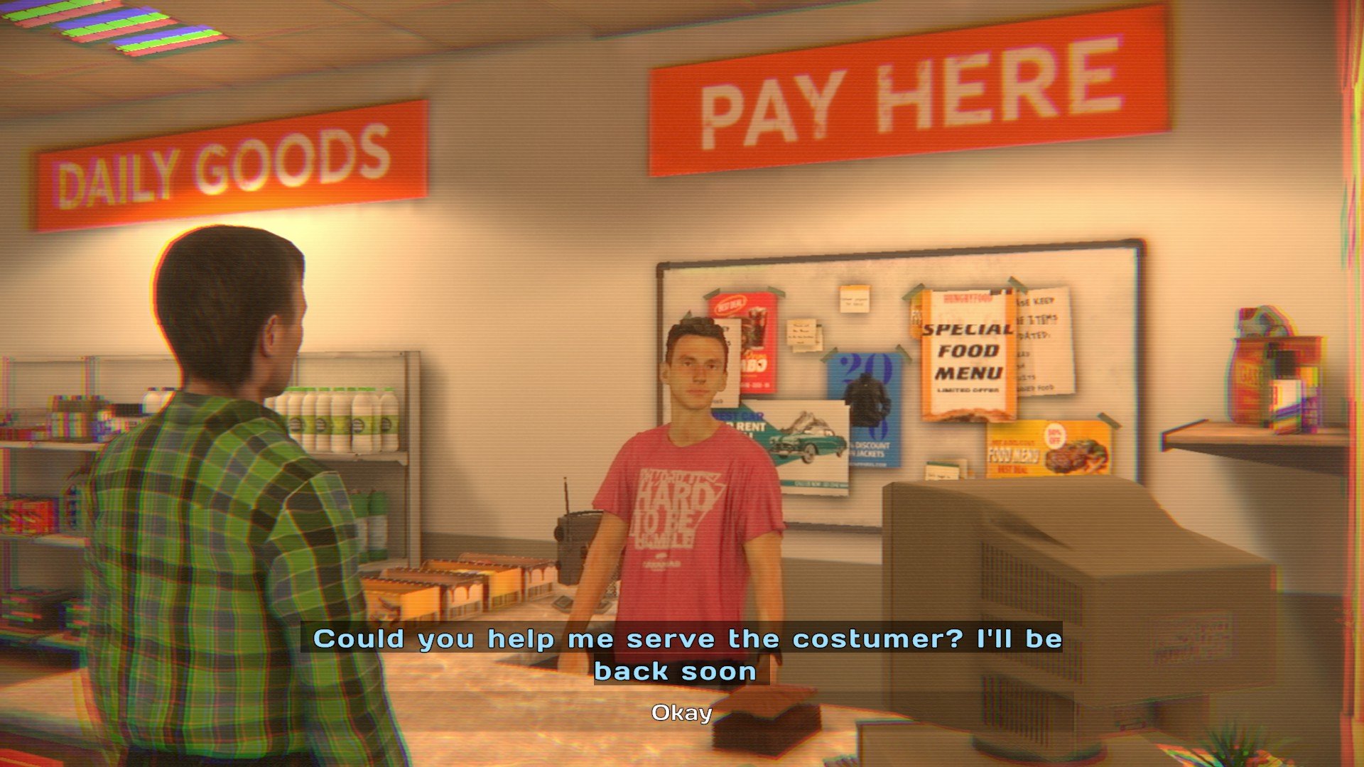 After walking through the woods, your attendant approaches the station, passing a busy driver before learning of several disturbing incidents from other customers.