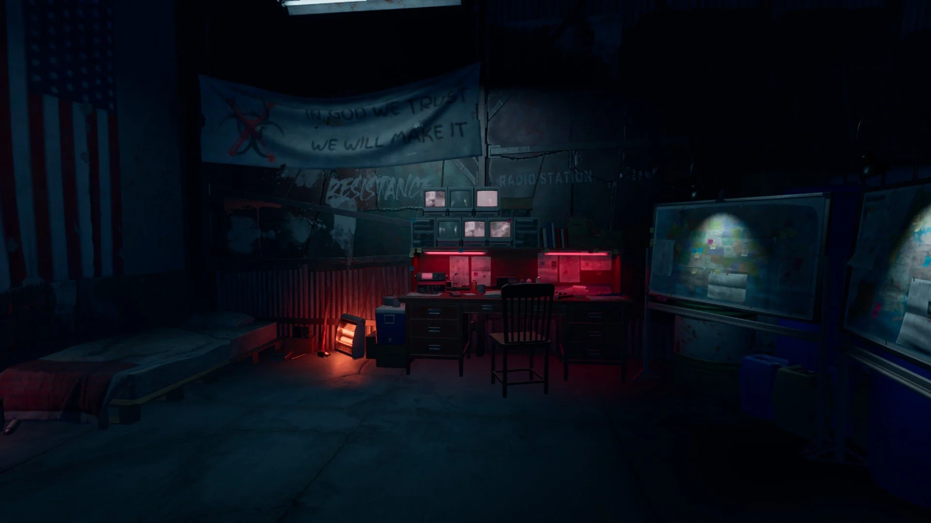 A mysterious outbreak has made you (and presumably many others) hunt for a safe haven, and you’ve seemingly located the ideal spot. A converted garage, this small building contains a generator, workbench, bed and more; it’s the perfect place, in fact, to wait out the apocalypse. Only there’s a problem: there’s no food or medicine, meaning frequent trips into the hazardous outside world.