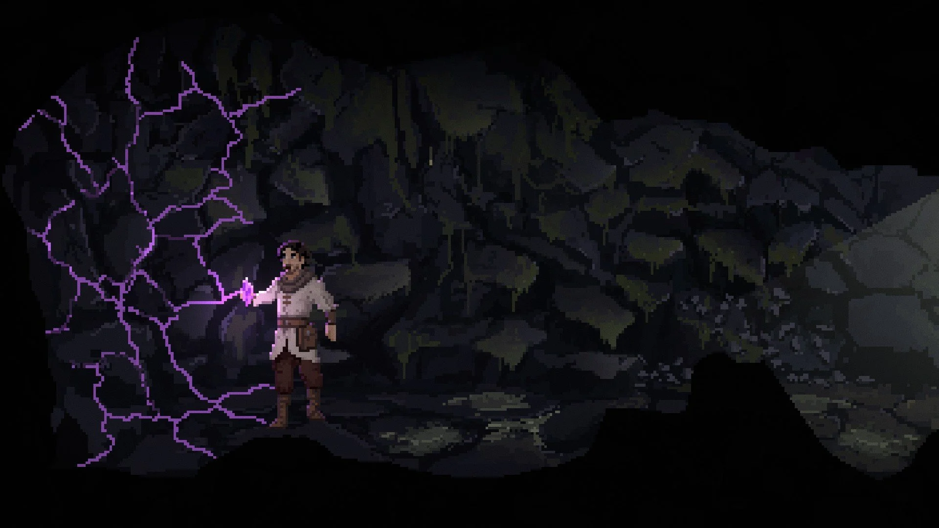 Two Realms takes place in a dark fantasy world. The player is Tobias, the older of two brothers, who discovers a disturbing secret in a cave near the boys’ home. When Tobias pries the crystal from its rocky prison, it sets in motion a series of events that’ll change both his and his brother’s lives forever.